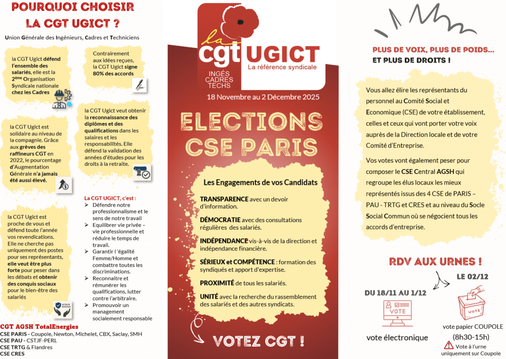 Accueil Actualités'; Elections CSE PARIS – Profession de foi Publié le 4 novembre 2025 Partager : Share on TwitterShare on FacebookShare on LinkedInShare on WhatsAppShare on Email